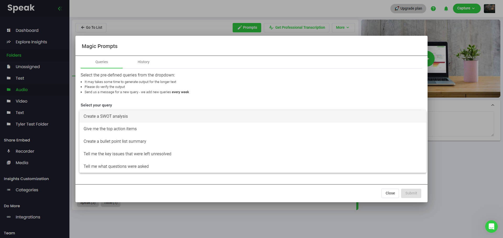 A modal will pop up that enables you to use pre-defined prompts to instantly and magically get valuable written answers.