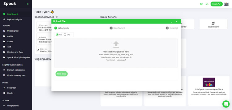 Get a 7-day trial with all features and 30 minutes of free audio and video transcriptional analysis included when you sign up for Speak.