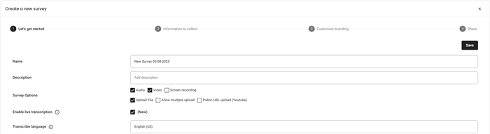 Live transcription is now available in your audio surveys (formerly the embeddable recorder). When someone records a response, they see the transcript update in real time. It ensures clarity, boosts confidence, and keeps data safe.