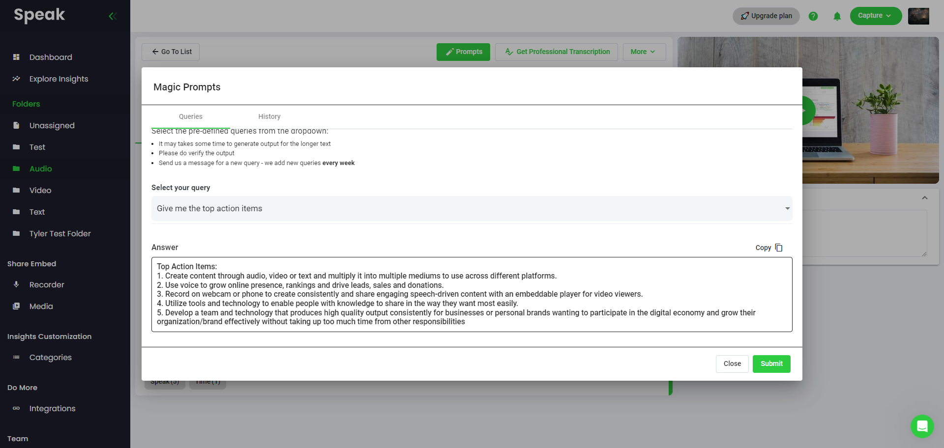 A modal will pop up that enables you to use pre-defined prompts to instantly and magically get valuable written answers.