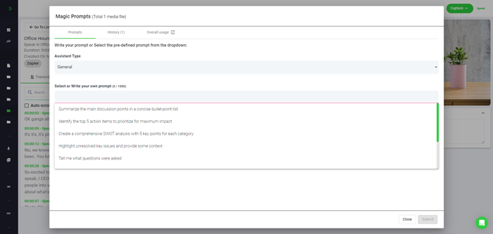 Don’t want to spend hours analyzing your audio, video and text data? No worries! With Speak Magic Prompts, you can use our recommended prompts or create your own to get mind-blowingly powerful answers from Speak.